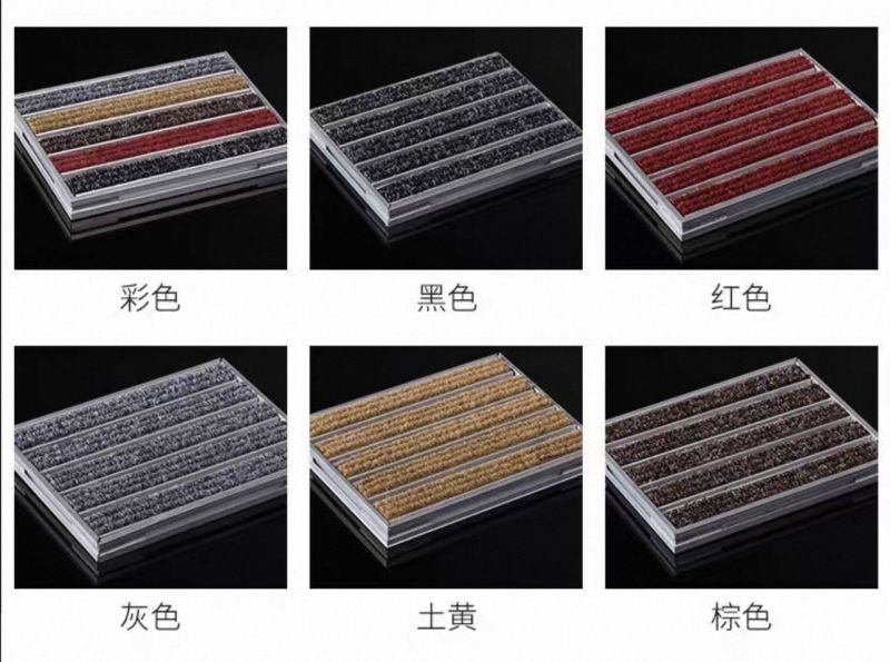 嵌入式鋁合金纖維地氈 材料:鋁合金/ 纖維地毯 高度: 20mm 長度/闊度:可訂製 鋁合金厚度:2mm 地毯顏色:黒、紅、灰、黃、棕色等 凹槽的深度要求:20mm 應用場景:住宅及酒店門口 ( 附有凹槽)