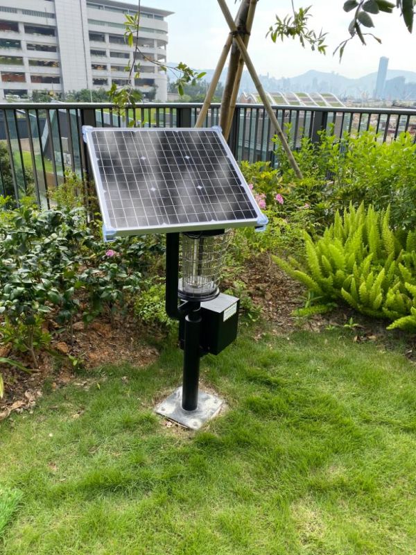 太陽能滅蚊燈 01 支架材質:金屬、不銹鋼、表面靜電噴塑 燈罩、電網材質:不銹鋼 電壓:12V(DC) 太陽能板:高效多晶矽 工作電流:1.3A 功率:10W 滅蚊(蟲)方式:雙光頻振式 電網高壓:3KV 電流〈5mA 防潮(雨)保護裝置:潮濕、雨水天氣安全正常工作 滅蚊、植保殺蟲面積:4000--5000平方尺(360度大面積殺滅蚊、蟲) 誘殺害蟲種類:夜蛾、毒蛾、天牛、麗金龜、螻蛄、蝗蟲、蚊蠅、白翅、飛蟻等數十種有害蟲類 適用範圍:學校、公園、種植業、公共場所、花園別墅等
