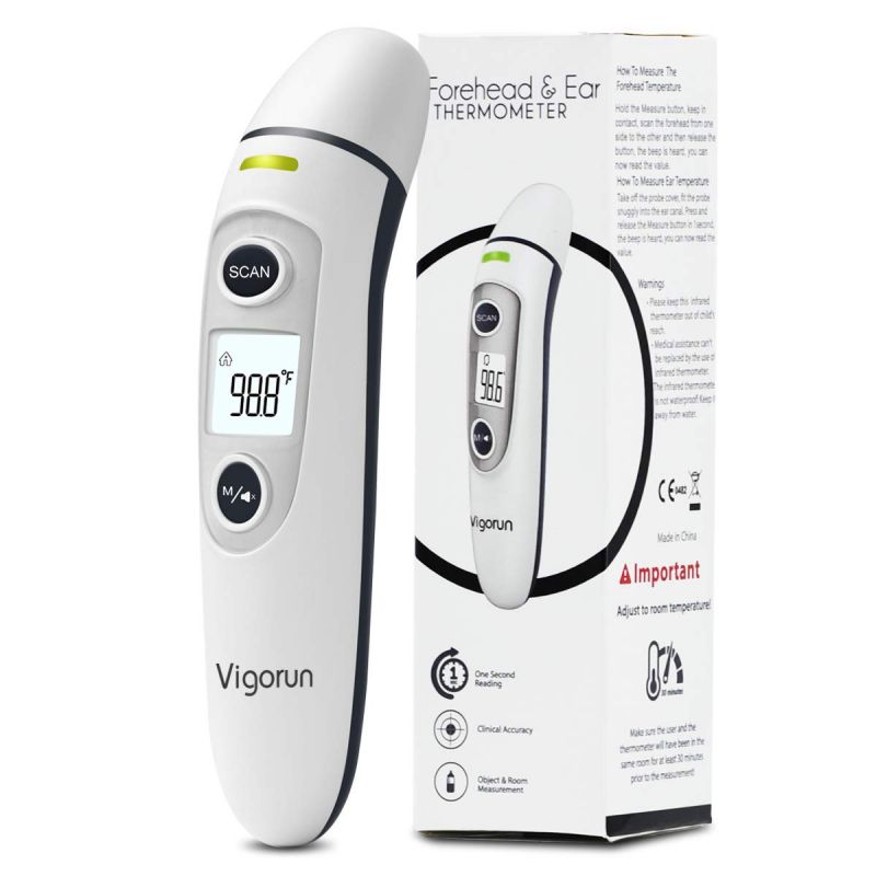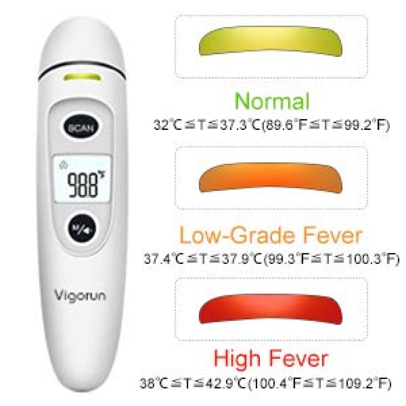 美國進口 Vigorun 醫用額頭及耳朵體溫計 牌子 : Vigorun 型號 : FC-IR100 特點 : - 新版本體溫計 , 更新了高精度探頭及最新的內置智能芯片, 它更快,更可靠,更安全。 - ℉/℃ 開關 - 發熱警告系統 : 在發熱時不同顏色指示 - 1秒快速測量,即時讀取 - 即使在黑暗中,也可以使用大型背光LCD屏幕清晰地閱讀它 - 可探額頭及耳朵兩用 - 耳朵及額頭模式誤差率 : +/-0.2℃ / +/-0.4℉ 規格: 尺寸:120g,163.3×39.2×38.9mm 電源:2 x AAA電池,可使用3000次以上 工作條件:50°F至104°F(10°C至40°C); 測量範圍:89.6°F-109.2°F(32°C-42.9°C) 測量距離:0.4in-2.5in(1- 6cm) *如需要購買 , 亦可選擇至以下本公司的附屬購物網站選購 :