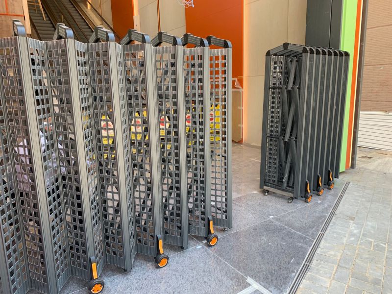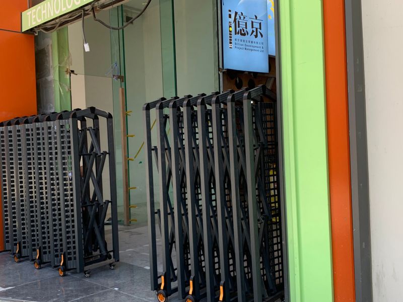 鋁合金保安拉閘 拉閘中間通孔(如圖),適合半露天用 - 材料:鋁合金 - 高度、長度可以自定 - 顏色 : 灰色或可自訂 - 厚度:0.65米 - 可用於停車場、商場、大型住宅,廠房等 產品客戶:觀塘368號項目