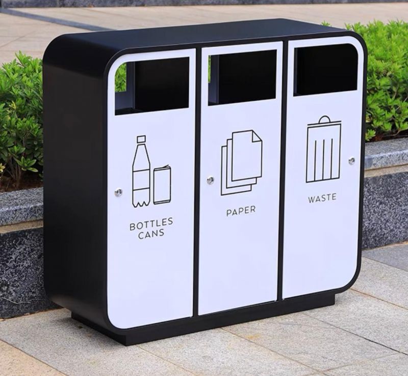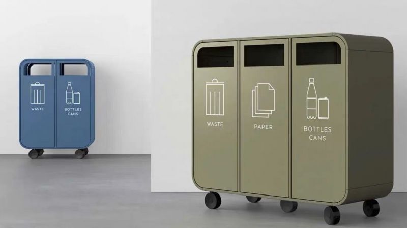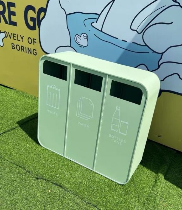 戶外分類回收筒 06 外/內桶物料 : 鍍鋅鋼外噴塑漆 顏色 : 白色,綠色,藍色 呎吋: 96cm 長 x 35cm 闊 x 88cm 高 每個桶容量 : 45L 環保 logo 圖案及顏色可以自訂 有固定/可移動2款