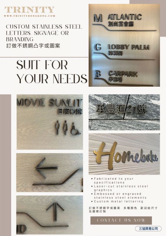 訂製不鏽鋼凸字服務 可來稿訂製不同厚度、設計、款式的不鏽鋼凸字 凸字可有不同電鍍顏色供選擇