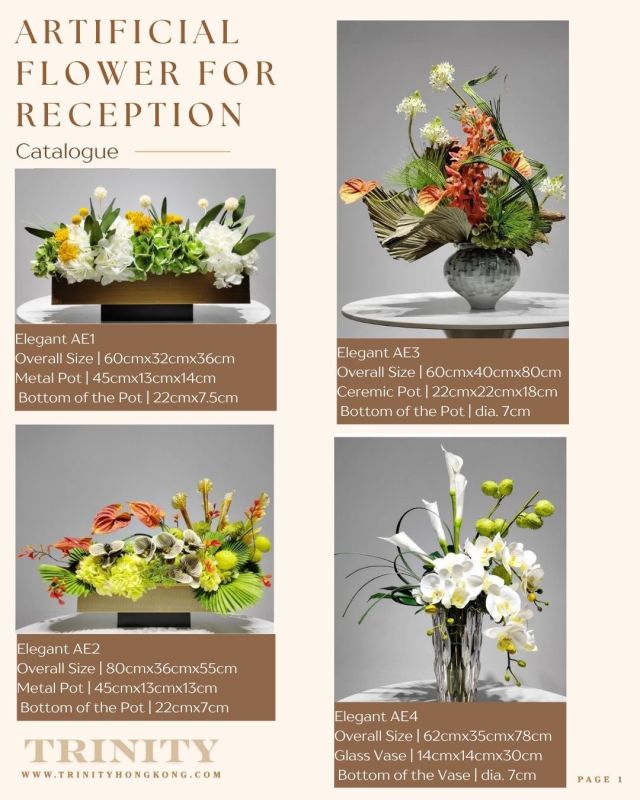 提供仿真花置放於公司的接待處 花盆的尺寸、花種、顏色等可配合接待處的設計 由專人按客戶的需要提供參考設計